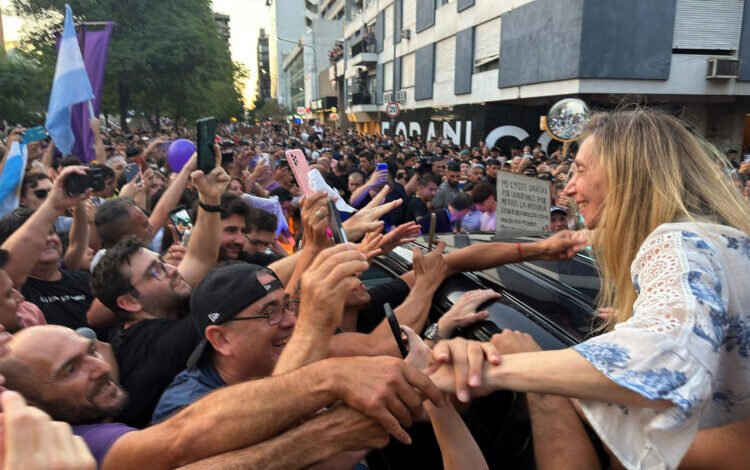 El presidente recorrió la ciudad en una camioneta oficial negra, acompañado por su hermana Karina Milei, la secretaria general de la Presidencia, y otros dirigentes del partido. A lo largo del trayecto, se abrazó con los manifestantes, saltó, gritó y arengó a la multitud.