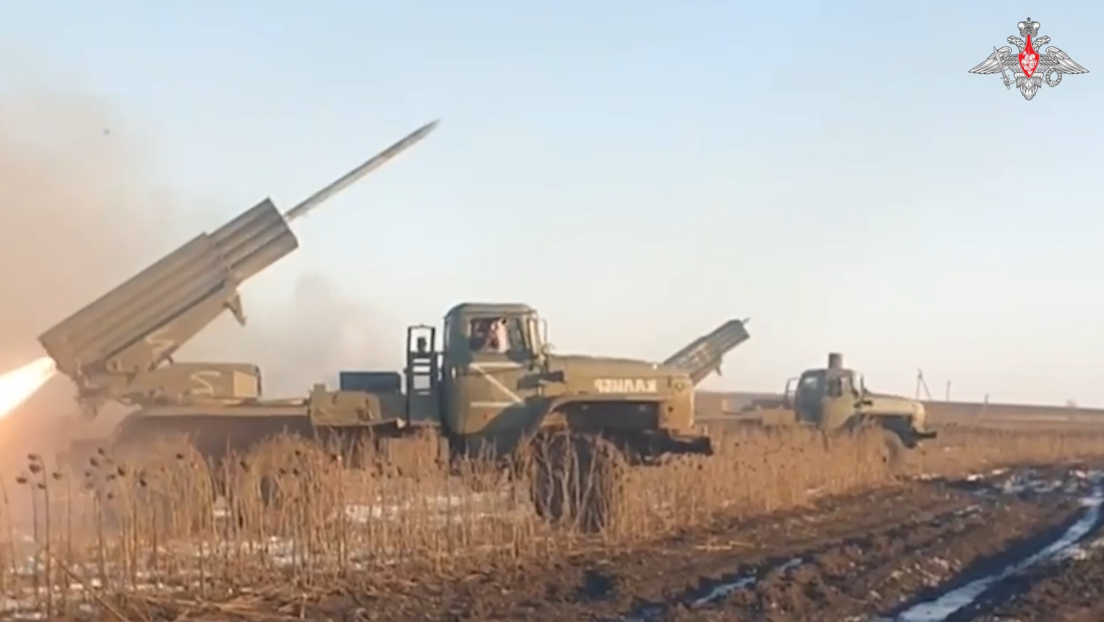 En el video se puede ver el momento en que los lanzacohetes múltiples Grad disparan sus proyectiles hacia las posiciones ucranianas, causando una gran explosión y destrucción.